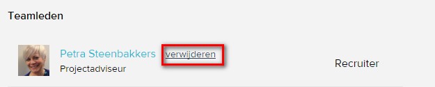 Om teamleden te verwijderen klik je op 'verwijderen':